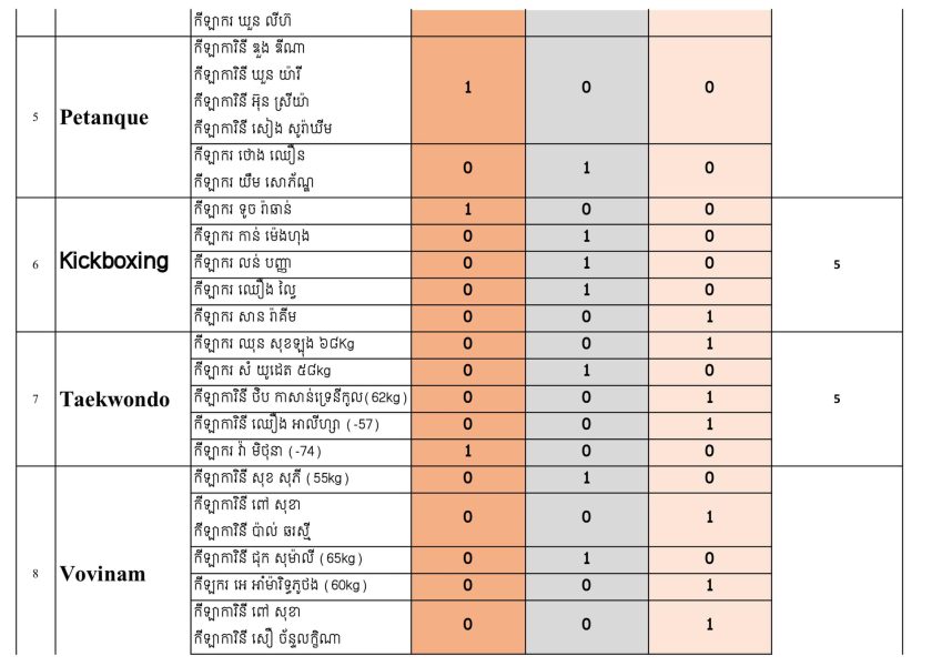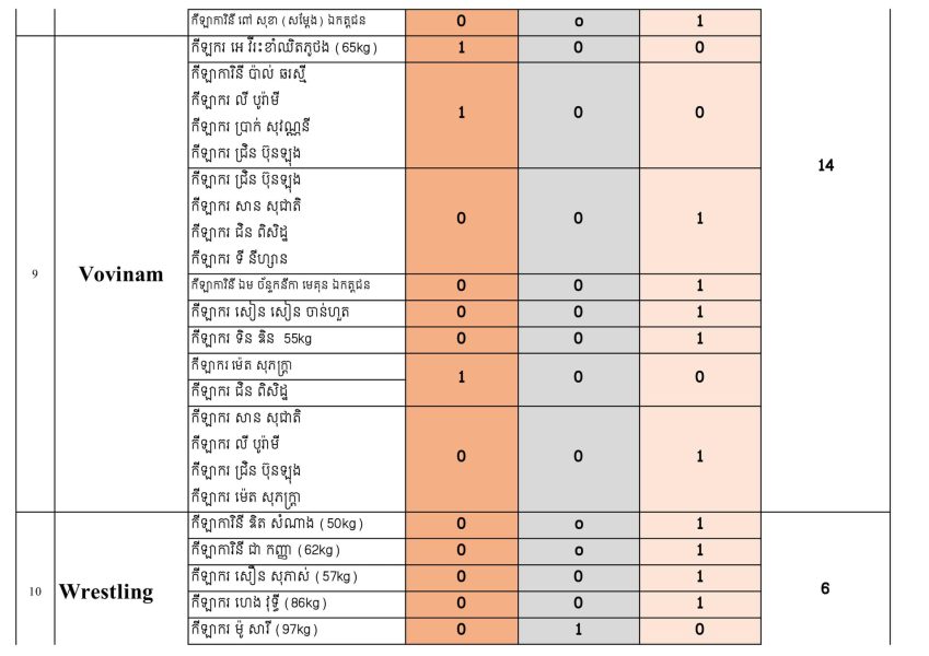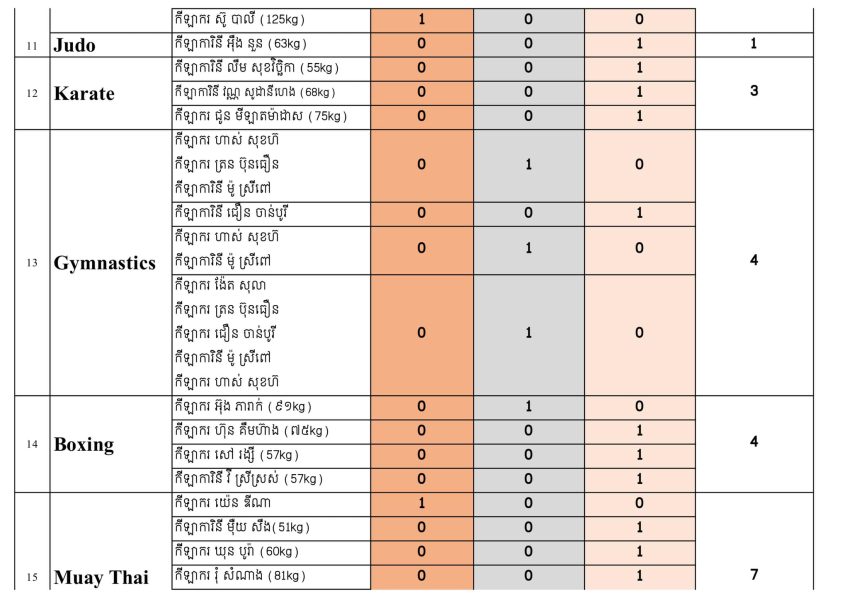 មេដាយដែលកម្ពុជារកបានក្នុងស៊ីហ្គេមនីមួយៗ