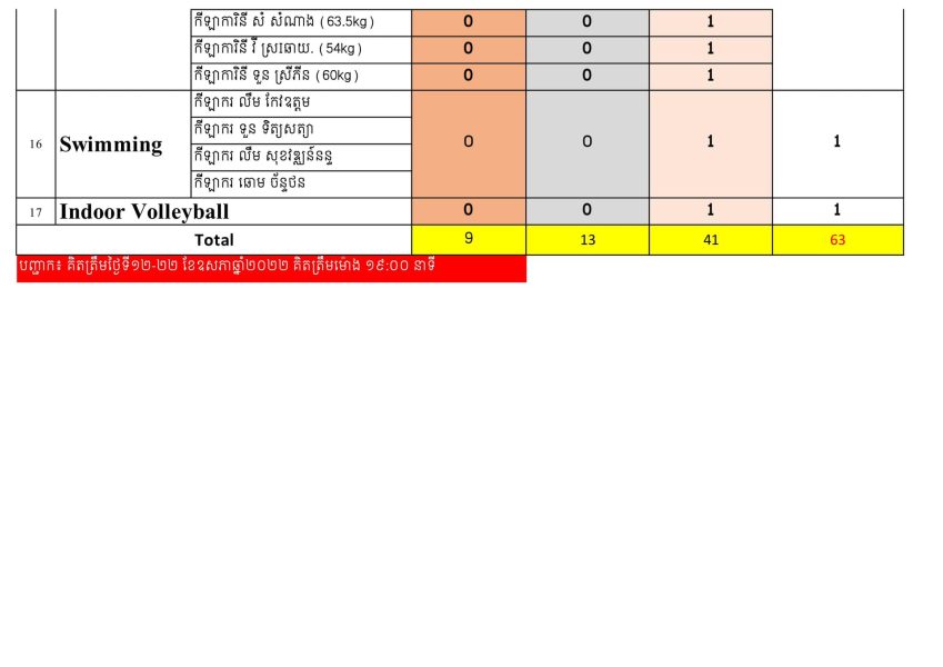 -លើកទី31 ឆ្នាំ2021 (លើកមក2022) ៖ មាស9 ប្រាក់13 សំរឹទ្ធ41 សរុបចំនួន 63៕
