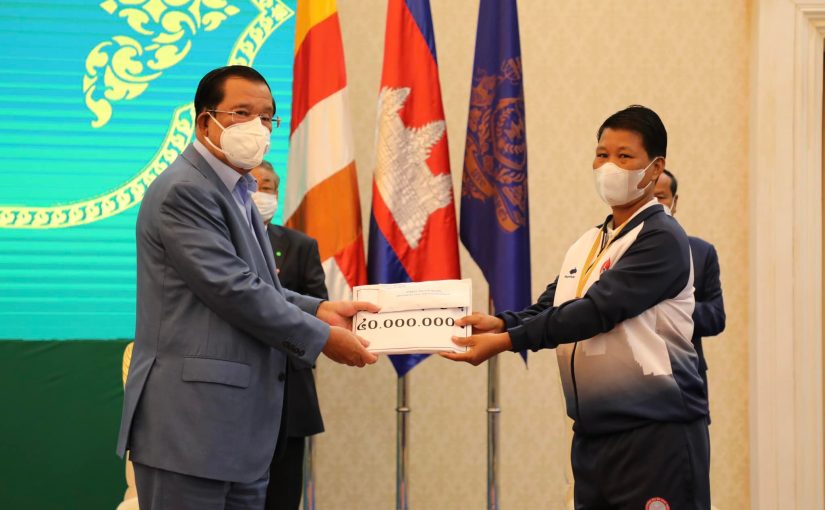 កីឡាការិនី អ៊ុក ស្រីមុំ ម្ចាស់មេដាយមាសប៉េតង់ពិភពលោក ទទួលប្រាក់រង្វាន់លើកទឹកចិត្តពីនាយករដ្ឋមន្ត្រី