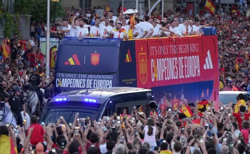 ក្រុមជម្រើសជាតិអេស្ប៉ាញ ធ្វើពិធីអបអរពានរង្វាន់ UEFA Euro 2024 ដោយមានការចូលរួមពីអ្នកគាំទ្ររាប់ម៉ឺននាក់