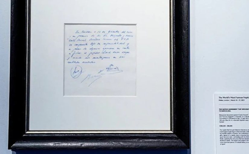 ក្រដាសជូតមាត់ដែលជាសំណេរកិច្ចសន្យាដំបូងរបស់ Lionel Messi ជាមួយក្លិប Barcelona ត្រៀមដាក់ដេញថ្លៃ