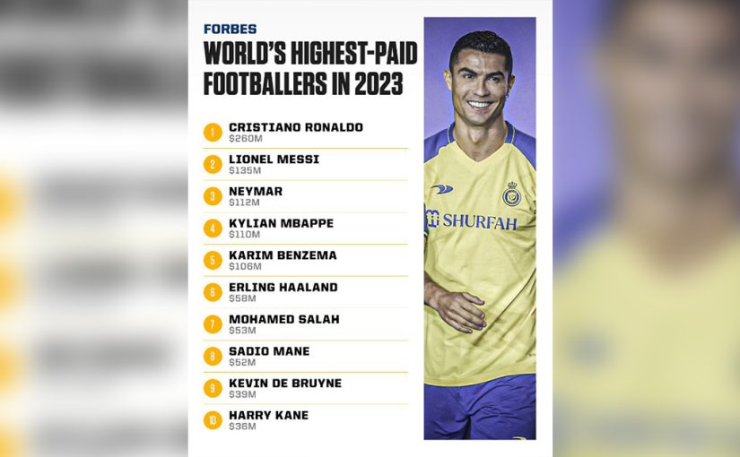 ខ្សែប្រយុទ្ធ Cristiano Ronaldo ជាប់ជាកីឡាករបាល់ទាត់រកចំណូលបានច្រើនជាងគេក្នុងឆ្នាំ២០២៣