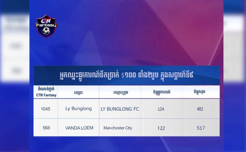 CBS Fantasy League៖ អបអរសាទរអ្នកឈ្នះ ១០០ដុល្លារពីររង្វាន់ កាលពីសប្ដាហ៍ទី៩