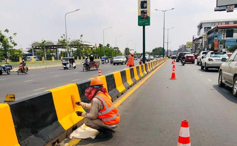 មន្ទីរសាធារណការនិងដឹកជញ្ជូនរាជធានីភ្នំពេញ គូសគំនូសសញ្ញាចរាចរណ៍លើកសោភ័ណភាពទីក្រុងត្រៀមទទួលគណៈប្រតិភូមកចូលរួមស៊ីហ្គេម